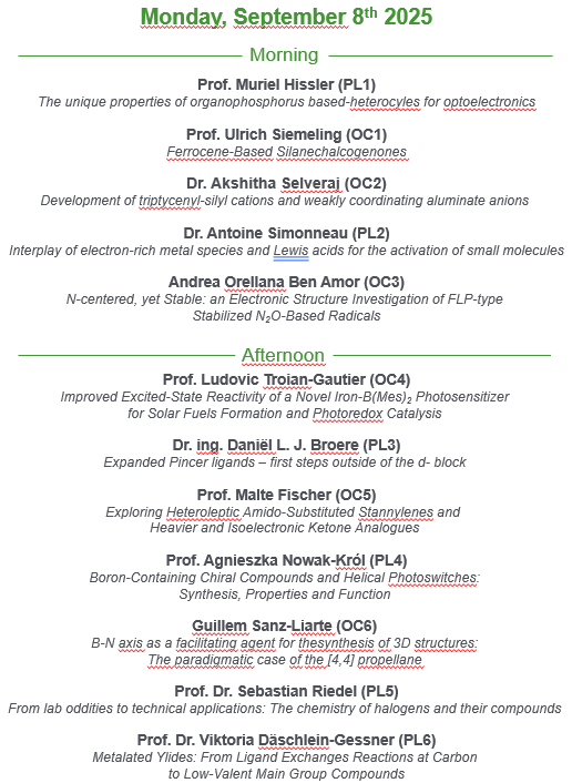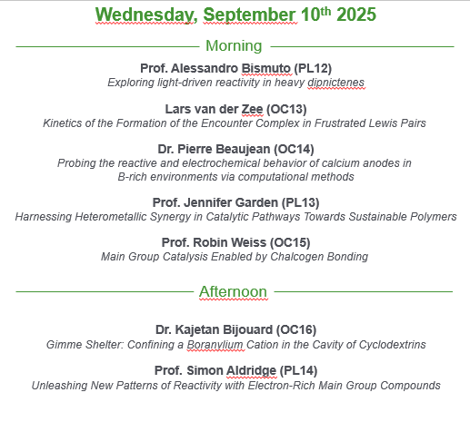 | 13:20 - 14:05 | Plenary Speaker - Daniël Broere | Plenary Speaker - Christian Hering-Junghans | Plenary Speaker - Simon Aldridge |