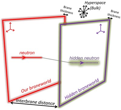 More technically, a neutron n could transform into a hidden neutron n’ when colliding with a nucleus. From a practical point of view, each collision at a nucleus acts as a quantum measurement and the neutron is reduced either in our, visible, world or in the other, invisible, braneworld (to become a hidden neutron) with a probability p. Hidden neutrons could, therefore, be generated in the moderator medium of a nuclear reactor, where a high flux of neutrons undergoes many elastic collisions. Being located in another braneworld, these hidden neutrons would interact very weakly with matter and freely escape the reactor. However, the reverse swapping process would permit us to detect them – with efficiency also proportional to p – using a usual neutron detector located close to the reactor. The disappearance and reappearance of neutrons due to the swapping between braneworlds would lead to the possibility of neutrons passing through a wall.